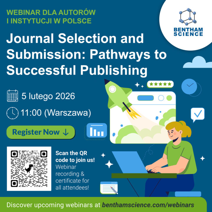 Wydawca Bentham Science przygotował webinar w języku angielskim na temat publikowania artykułów w formie Open Access. Webinar poprowadzi Pan Gareth Dyke z wydawnictwa Bentham: